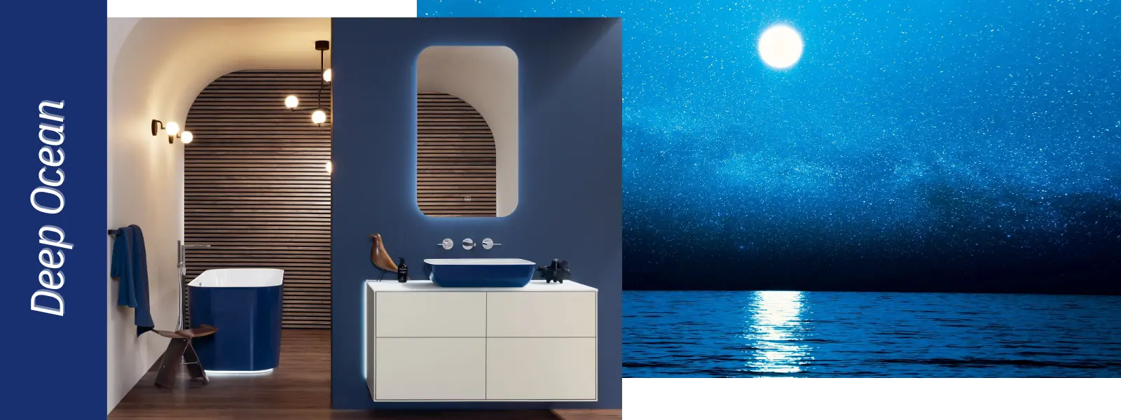 Van kedved egy éjszakai csobbanáshoz a tengerben? Merülj el a Deep Ocean sötétkék mélységében. Ez a kimagaslóan elegáns árnyalat tökéletesen megragadja a távoli partok hangulatát a fürdőszobában. A Deep Ocean varázslatos atmoszférát teremt, és nyugodt, megnyugtató hatással vonja be az egész teret.