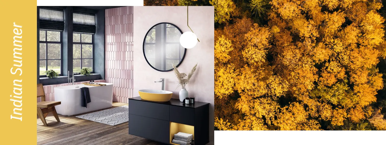 Az Indian Summer derűt hoz a mindennapokba: élénk, friss sárga árnyalata felébreszti a boldogsághormonokat. Inspirálóan hat az elmére, hiszen a sárga serkenti a gondolkodást és ösztönzi a kreativitást. Az Indian Summer üdítő, energikus hangsúlyt ad a fürdőszobának – sötét tónusokkal párosítva pedig még ragyogóbb hatást kelt.