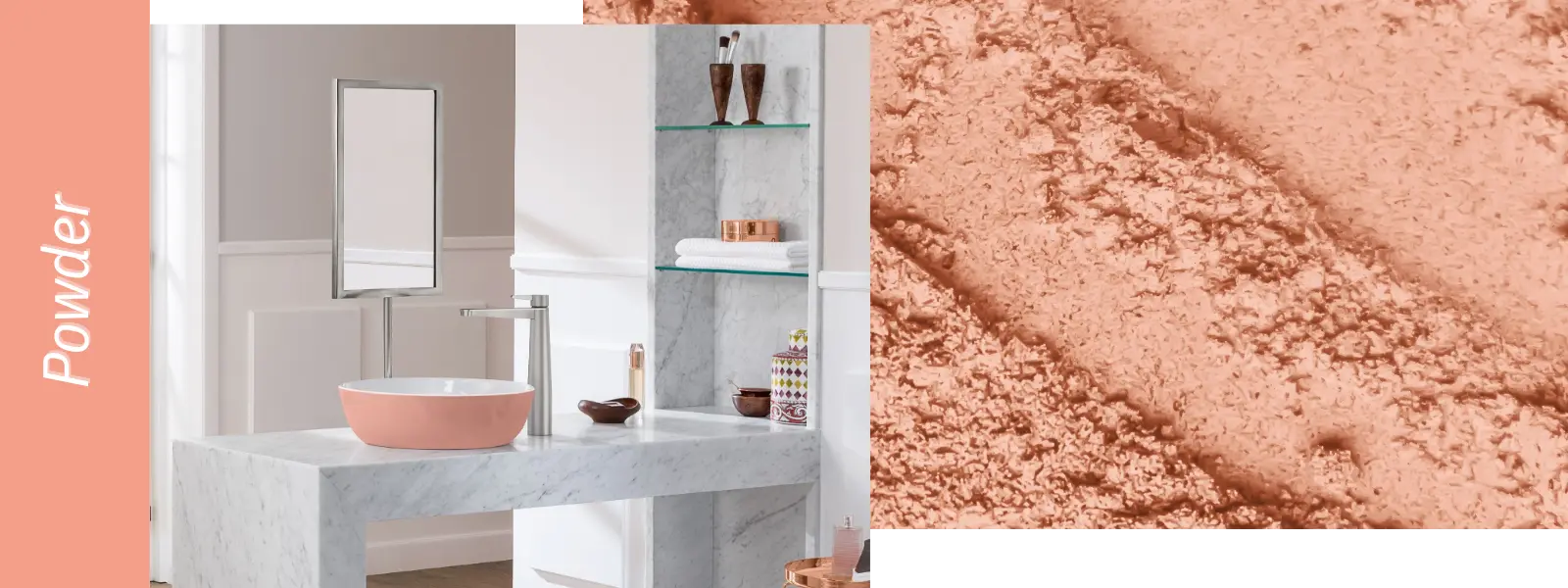 A Powder vidám, friss és játékos. Ez az Artis szín azonnal feldobja a fürdőszobát. Matt feketével párosítva igazi látványelemmé válik, extravagáns megjelenést teremtve. A Powder azonban ennél is többet tud: valódi léleknyugtató, hiszen a rózsaszín árnyalatai megnyugtató hatással bírnak, és segítenek a felszabadult, könnyed hangulat megteremtésében.