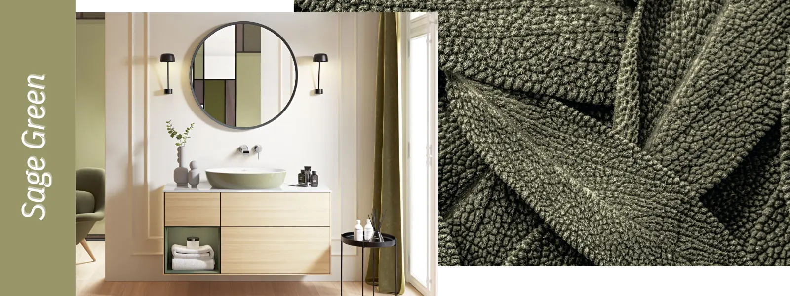 A zsálya a növények közé tartozik, amelyet Észak-Amerika őslakos népei a tisztulással hoznak összefüggésbe. A Sage Green természetes nyugalmat áraszt. A szürkébe hajló, lágy zöld árnyalat ideális a megnyugtató, pozitív hangulat megteremtéséhez. Ez az Artis szín tökéletesen kiegészíti a fa felületeket egy természetes hatású fürdőszobában.