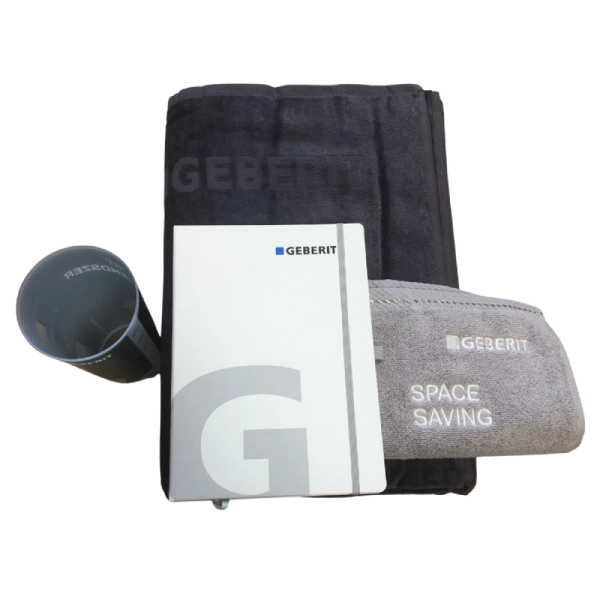 3 db Geberit ajándék (törölközők, naptár, repohár)