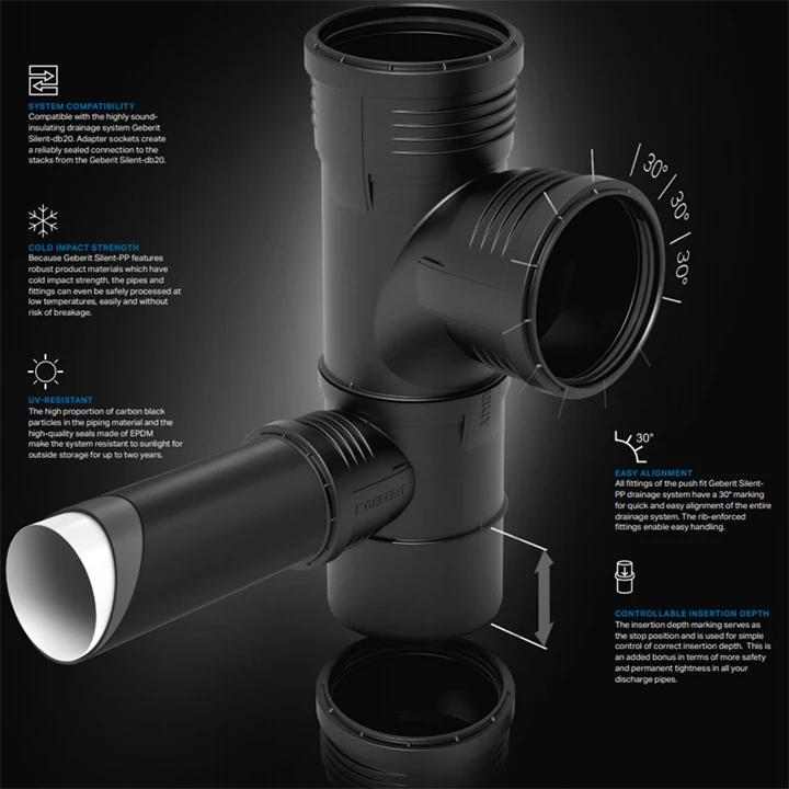 Geberit Silent-PP 87,5°-os elágazó idom: d=110mm, d1=75mm 390.549.14.1